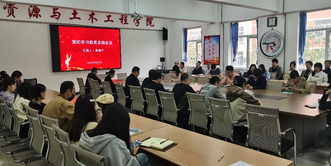 9月25日下午,资源与土木工程学院召开党纪学习教育总结会议,全面总结党纪学习教育开展情况,对推进党纪学习教育常态化进行部署。学院全体教职工参加会议。