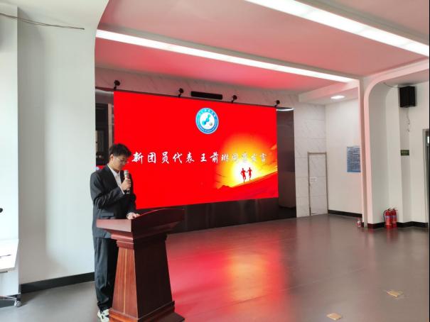 机械工程学院24级本科生王前琳作为新发展团员代表发言,他郑重承诺:在今后的学习和生活中,将时刻以团员的标准鞭策自我,努力学习科学文化知识,积极参加社会实践,发挥模范带头作用,为团组织增光添彩,为实现中华民族伟大复兴的中国梦贡献自己的青春力量。