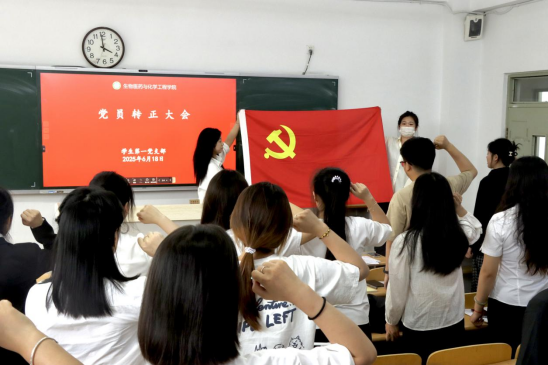 为进一步夯实党组织建设根基,扩充党员队伍,提升党组织的先进性与活力,根据学校党委安排及学生党员发展工作要求,生物医药与化学工程学院于6月18日在博学楼3-201、3-202召开党员纳新暨转正大会。本次大会分别由学生第一党支部书记齐辉、学生第二党支部书记于苗主持,党总支书记纪丽岩、党总支副书记卢志鹏、组织员孙晓磊、学生第一党支部组宣委员果巾迪、学生第一党支部纪检委员王嘉峰、学生第二党支部组宣委员张宇以及支部全体学生党员和发展对象参加此次大会。