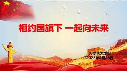 为深入学习贯彻党的十九大和十九届历次全会精神,贯彻落实习近平总书记关于教育的重要论述和第十三次党代会精神,巩固党史学习教育成果,传承优良家风家训,弘扬雷锋精神,增强文化自信,强化爱国情怀,在贯彻落实校园防疫要求的前提下,人文艺术学院于2月28日举行以“相约国旗下,一起向未来”为主题的云升旗仪式。升旗仪式由段清清同学进行主持,人艺学院全体学生出席参与。