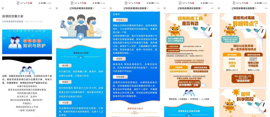 封校不忘锻炼,多空间无限运动。大学体育线上教学开展以来,学生们除了跟随指导教师进行多种适合小空间的体育锻炼,还自发开展各种运动项目,做到封校不忘锻炼。健美操俱乐部在线上开设俱乐部云端小课堂,面向全校师生开设线上直播课程,选取《你笑起来真好看》等欢快曲目和青春向上的舞蹈动作,不仅丰富了课程资源,充实了学生课余生活,而且达到锻炼身体、愉悦身心的教学目的,收获了广大师生的一致好评,展现了学校师生在特殊时期积极、健康、向上、乐观的体育精神,更展现了“坚忍不拔 百炼成钢”的辽科精神。