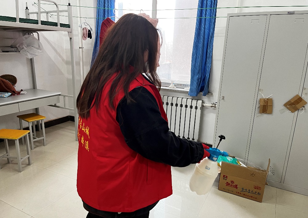 大战大考面前,青春力量从未缺席。为保证学生们的健康安全,由学生志愿者组成的志愿服务团队对学院学生寝室内进行了全方位的喷洒消毒。志愿者们服务在第一线,以她们的热血和激情,协助学校全面做好疫情防控工作,号召同学们身体力行,时刻保持寝室环境卫生整洁,预防疾病传播,提高防范意识,保护自己的身体健康,积极配合学校各项疫情防控的相关要求,增强责任意识和防护意识,万众一心,严防严控,坚决打赢这场校园疫情保卫战。广大学生志愿者们主动亮身份、做表率,以青春之我、青春之力,践行着“爱满辽科,志愿有我”的青春誓言,在战“疫”前线筑起了一道青春长城。