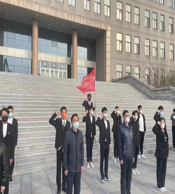 学生代表刘书铭带领在场全体学生庄严宣誓:“请党放心,强国有我!我愿以青春之我,创建青春之辽科,青春之中国!”铮铮誓言高昂雄浑,回荡在广场之中,表达了电信学子们同心抗疫,以实际行动为母校和伟大祖国奋斗的决心。