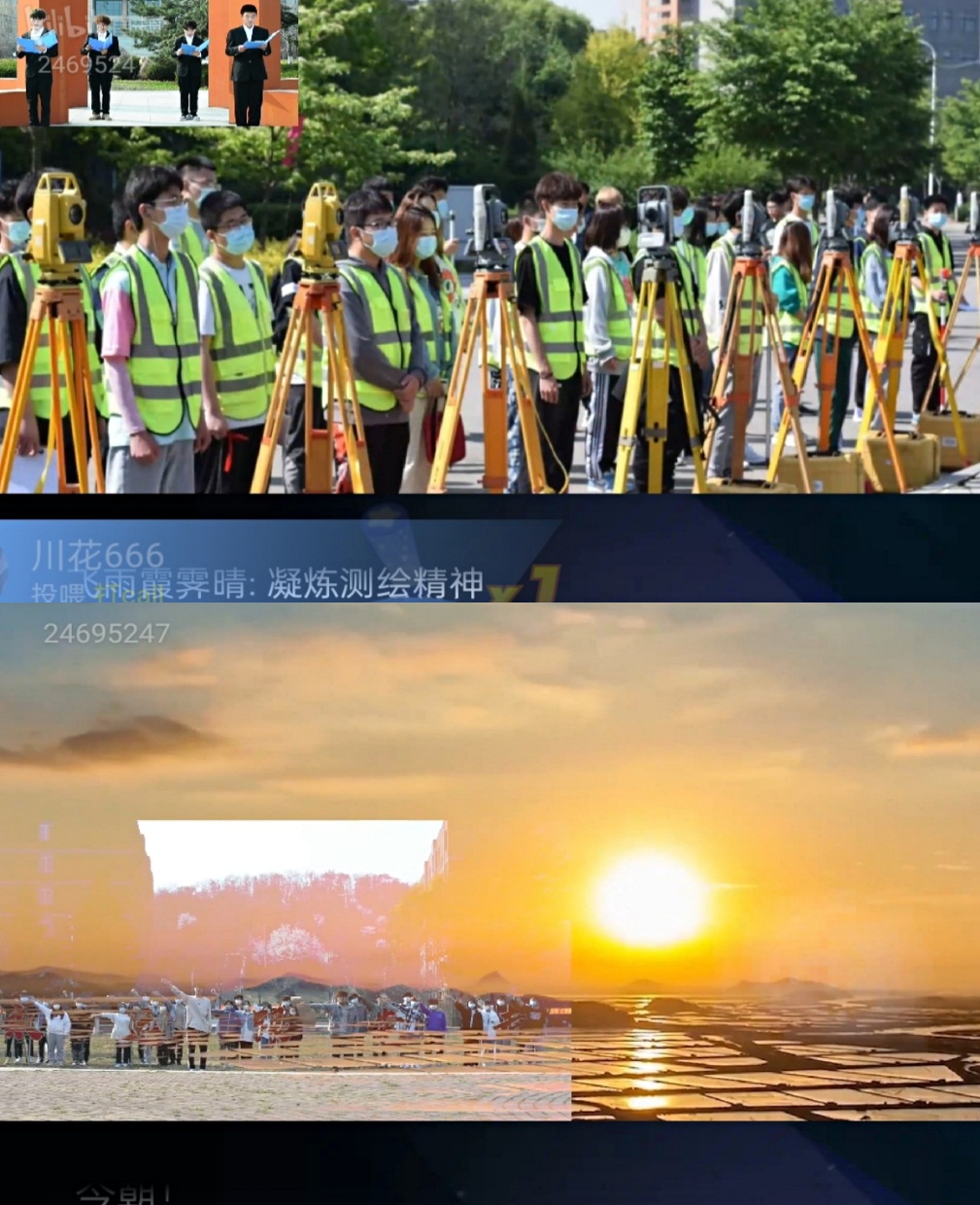 大会上,学生们还带来了自编自导的节目,诗朗诵《担时代使命,绘祖国蓝图》,展现了我国测绘科学发展和变迁的光辉历程;合唱《初心绘宏图》唱出了测绘人用脚步丈量祖国大地,挑战生命极限,笑傲风霜雨雪,战天斗地的豪情。