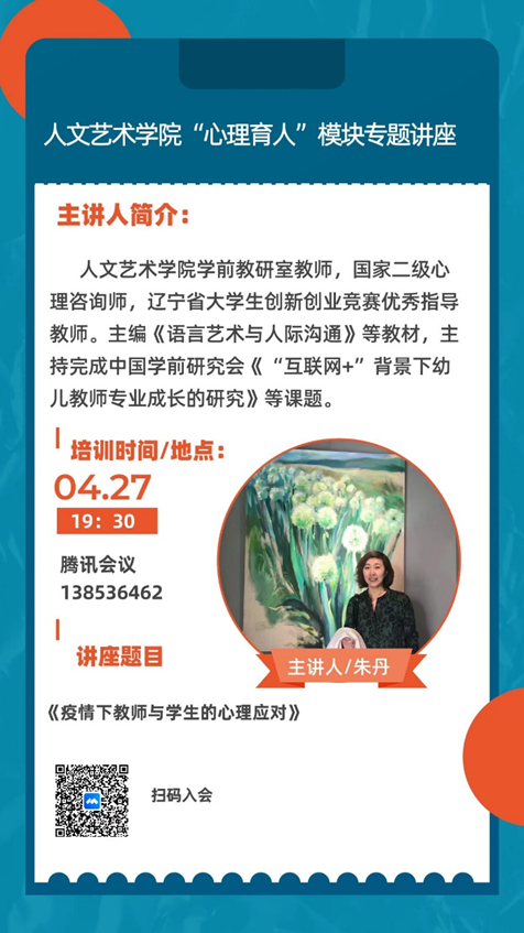 为切实推进心理辅导、实践活动、咨询服务、预防干预、实施保障“五位一体”的心理育人工作机制,4月27日,人文艺术学院开展了以《疫情下教师与学生的心理应对》为主题的专题心理育人讲座。讲座由人文艺术学院院长唐羽教授主持,国家二级心理咨询师朱丹老师主讲,学院全体教师参加。