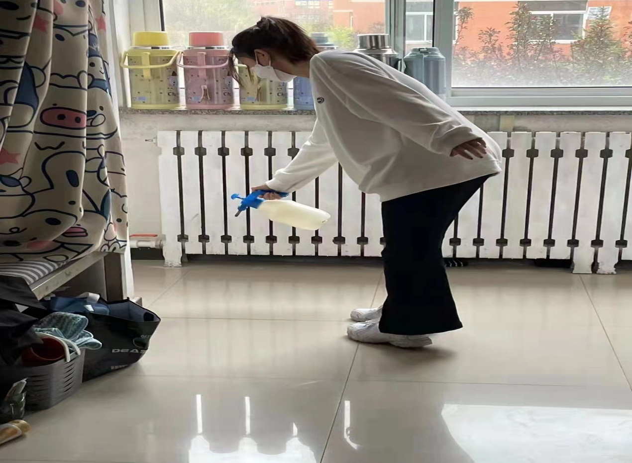 4月17日至4月30日,在全校范围内进行重点部位消杀工作。在做好清洁工作基础上,进行重点部位消杀,主要包括实验室、体育馆、教室、寝室、楼内大厅(门厅)、楼道、楼梯间、卫生间等公共区域,特别是对台面、门把手、楼道开关、洗手盆、坐便器等经常接触的物体表面进行消杀。清理卫生死角、操场角落及垃圾点等部位的消毒处理,同时做好及时通风工作。