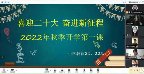 为引导广大团员青年厚植爱团、爱党、爱国情感,让红色基因、革命薪火代代传承,9月1日至2日,学院组织各团支部开展了“喜迎二十大,奋进新征程”主题线上团课。团课活动中,各团支部组织了丰富活动内容:广告bg211和广告bg212由主持人带领全体团员青年学习了习近平总书记在中央党校(国家行政学院)中青年干部培训班开班式的重要讲话精神,并讲解了党的二十大召开的重大意义,引发了各位同学的思考;小教bg211通过问答活动引导同学们了解党和国家的前进方向,鼓励团员青年不负时代、不负韶华、不负党和人民的殷切希望,以昂扬姿态紧跟党奋进新征程、建功新时代;绘画bg211通过演讲和朗诵的方式鼓励每位同学积极参加社会实践活动,培养良好的团队精神和积极进取的人生态度,提高自己的素质拓展能力丰富大学生活的同时,坚定服务社会、学以报国的梦想,始终牢记青春使命,持续迸发青春活力。