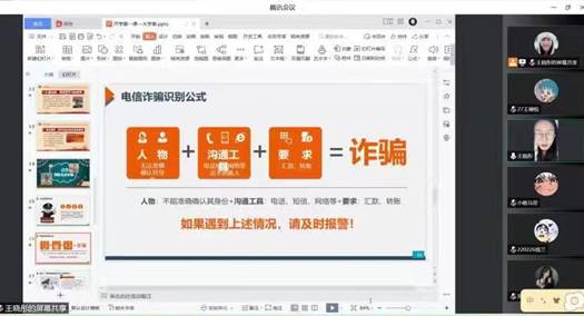 9月1日,学院各班级辅导员组织开展“喜迎二十大,奋进新征程”开学第一课主题班会。班会上班班主任强调,青年学生要牢记使命,永远跟党走。要深刻牢记习近平总书记对青年的期望,深刻领悟“两个确立”的决定性意义,增强“四个意识”、坚定“四个自信”、做到“两个维护”,担当起党和人民赋予的历史重任,用青春唱响“强国复兴有我”的时代强音,在实现中华民族伟大复兴的中国梦的生动实践中放飞青春梦想。班会还对学生进行了预防电信诈骗教育。在校大学生初入社会缺乏社会经验,遇到社会闲杂人员的坑蒙拐骗无法清晰识别,很容易落入诈骗陷阱,造成无法挽回的后果。他们强调,大学生应警惕电信诈骗,提高自身防范意识。因此,同学们有必要学习防诈骗知识,提高自我防范意识和自我防护能力,让诈骗分子毫无可乘之机。