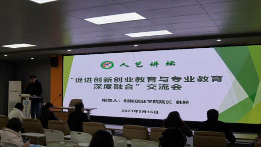 3月16日下午,人文艺术学院于智慧东楼三楼的路演大厅举办“人艺讲坛”系列活动之“促进创新创业教育与专业教育深度融合”交流会。会议邀请创新创业学院院长韩娇做主讲报告,人文艺术学院副院长白冰洋主持会议。