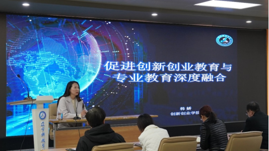 韩娇还重点讲解了“专创融合”的类型和阶段,结合人文艺术学院各专业特点,分别介绍了“专创融合”四种类型如何实现创业知识模块的植入、创业项目的植入、创业教学方法的融入和创业方法论的融入,真正促进创新创业教育与专业教育深度融合。韩娇指出,创新创业学院将持续为各二级学院提供服务平台,进行资源对接,支持创新创业团队的建设,鼓励人文艺术学院依托专业优势进行省级特色双创实践基地建设的申报准备。