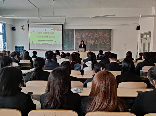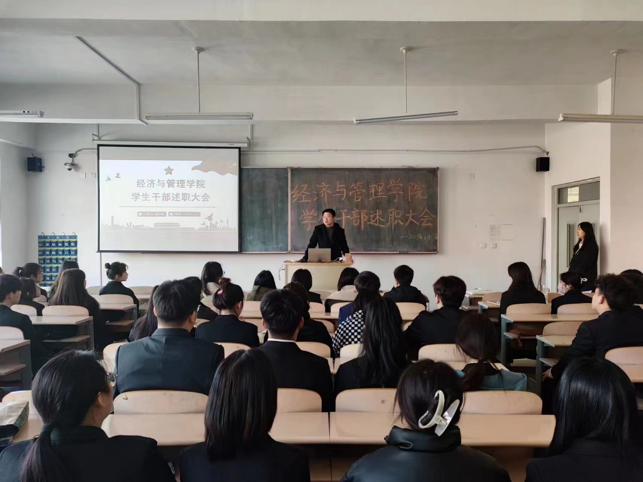 为深入学习贯彻党的二十大精神,深学笃行习近平总书记关于青年工作的重要论述,加强学生干部思想建设,提高履职能力,推动学生干部工作精细化、科学化、规范化,更好的开展本学期工作,3月17日,经济与管理学院于博雅楼1区311教室组织召开学生干部述职大会。经济与管理学院党总支副书记凌正魁、学院辅导员老师以及全体学生干部共同参加了大会。