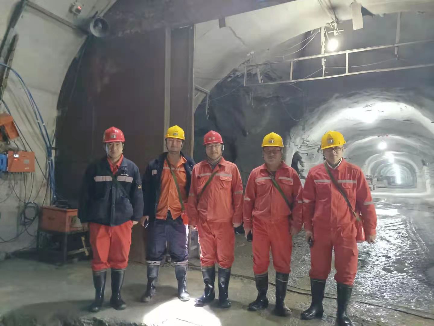 在龙新矿业领导的陪同下,一行人员深入地下1020米水平巷道,考察地下深部开采和巷道建设,李胜鹏详细介绍了地下超深掘进、开采、充填、通风、爆破等技术难题。