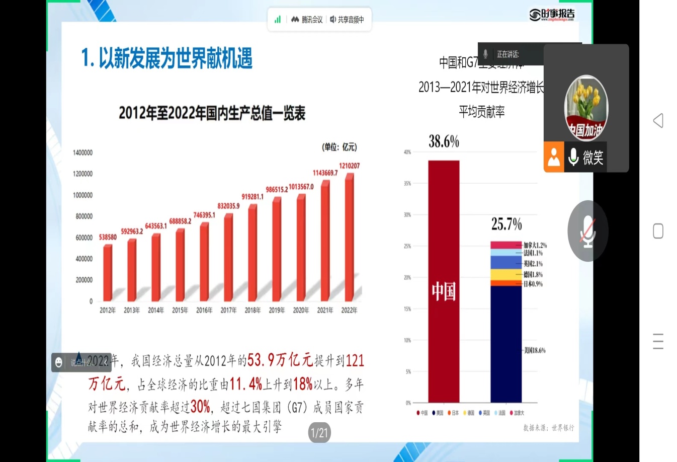 为全面贯彻党的二十大精神,促进大学生坚定不移听党话、跟党走,深刻理解党的二十大报告思想内涵,进一步加深对“中国式现代化”“和平与发展”等主题的理解,树立正确的择业观,3月28日、30日,经济与管理学院院长孙建竹、党总支书记张建华分别为经济与管理学院2019级、2021级学生讲授题为《走好中国式现代化之路》《脆弱复苏的世界经济》的形势与政策课。