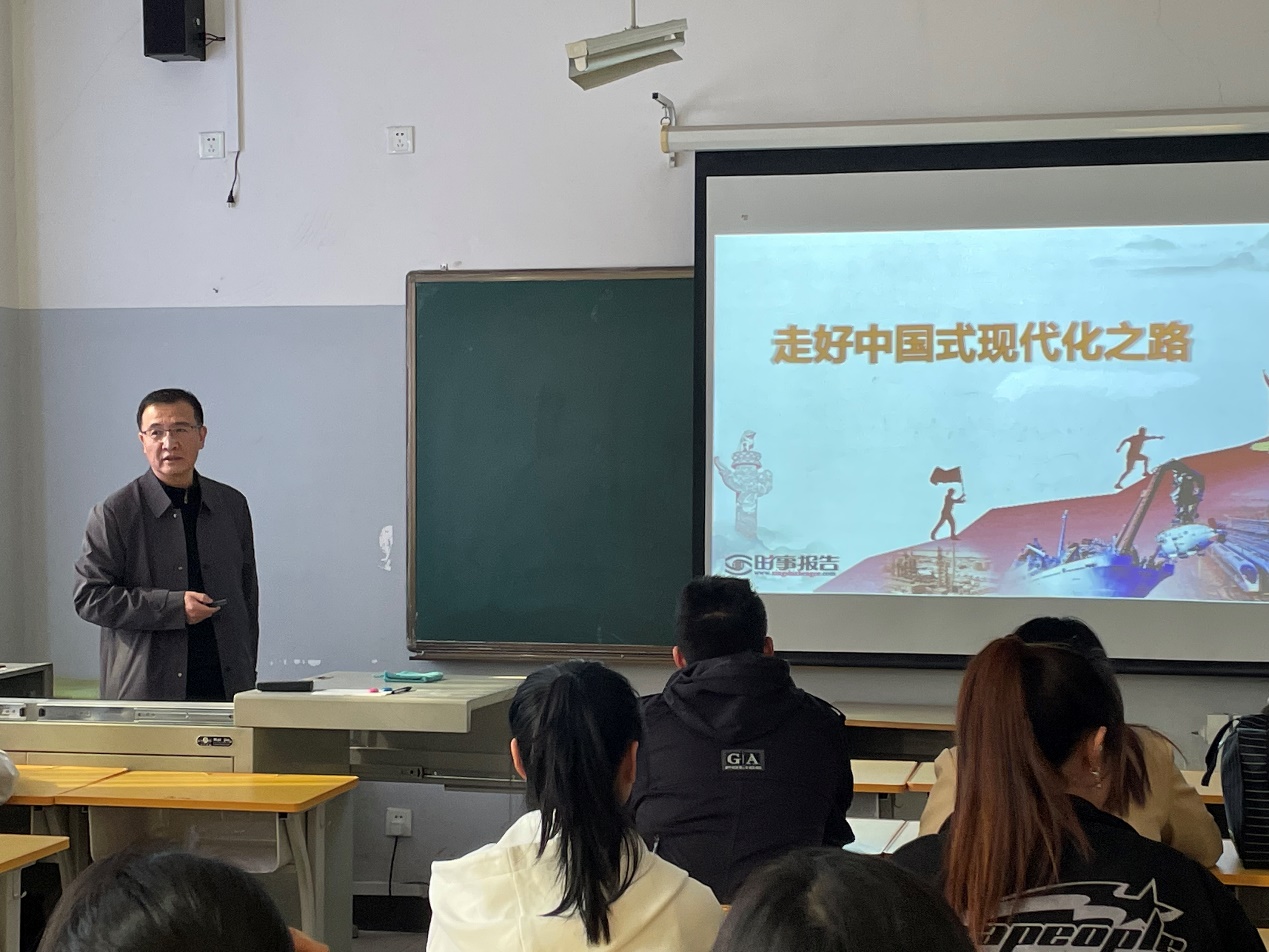 为切实加强大学生思想政治工作,引导广大学生坚定理想信念,3月30日、31日,人文艺术学院院长李春燕、党总支书记朱军楠结合最新时政热点,分别为全体2020级、2022级学生讲授题为《立志复兴伟业踔厉奋发前行》《走好中国式现代化之路》的形势与政策课。