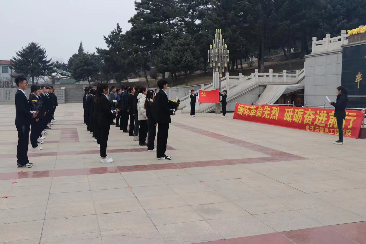 为深切怀念在新中国革命事业中前仆后继、英勇献身的革命烈士们,继承前辈革命意志,弘扬伟大建党精神,4月4日,电子与信息工程学院组织教师党员与学生骨干前往本溪烈士纪念馆开展“缅怀革命先烈,砥砺奋进前行”清明祭扫活动。学院党总支书记宋万刚、副书记卢志鹏,全体辅导员,部分学生党员、积极分子以及学生干部参加本次活动。活动由学院教学副院长胡楠主持。