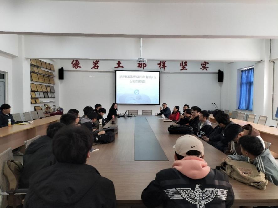 为更好地构建学生与实习单位双向选择平台“零距离”对接,进一步深化产教融合协同育人,通过顶岗实习实现优质就业,4月7日、8日,罕王实业集团抚顺市马珺城铁矿有限责任公司总经理孟凡明、综合办主任付莉娟、人事员徐杨,抚顺罕王傲牛矿业股份有限公司人力资源招聘主管蔡琳等先后莅临资源与土木工程学院举办采矿工程专业顶岗实习宣讲会。资源与土木工程学院院长邢文战,采矿工程专业教研室主任渠爱巧,党支部书记张永华,采矿教研室教师李娜、韩旭,采矿bg20级全体学生参加了宣讲会。