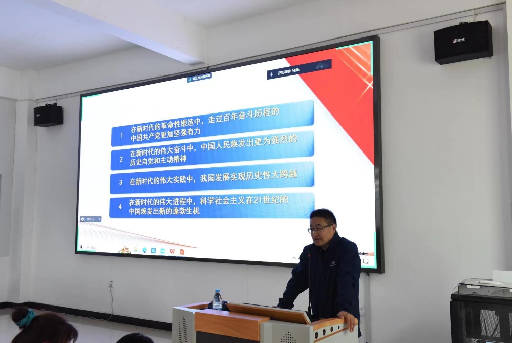在学生党支部第85期党校培训班开班仪式结束后,党总支书记吴绪子为学生党员作“学习贯彻习近平新时代中国特色社会主义思想”专题辅导。他强调,学生党员要提高自身政治站位,把学习贯彻习近平新时代中国特色社会主义思想和提升专业素养有机结合起来,做到德智体美劳全面发展,充分发挥好党员的模范带头作用,切实将个人前途、自身发展与党和国家的需要紧密相联。