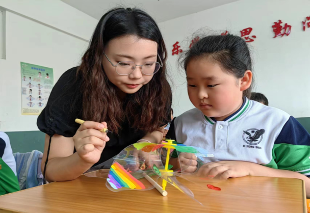 2023年春季学期,人文艺术学院小学教育、学前教育两个专业派遣九位顶岗实习教师参与丹东市凤城弟兄山镇九年一贯制学校美育浸润计划实践项目。课程以美育建设为主线,以讲述、示范、操作等多种方式,分别开展了以韵律音乐教学、舞蹈教学、手工艺制品教学、创意绘画教学、书法教学等几个方面的实践课程。经过努力,已构建成教学、研讨、实践多位一体的联动机制,切实发挥学校服务地方教育发展、服务乡村振兴的作用。
