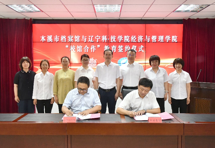 为加强校馆合作,促进高校人才培养与地方档案事业发展,7月20日,经济与管理学院与本溪市档案馆校馆合作签约仪式在本溪市档案馆举行。本溪市档案馆馆长韩晓东、副馆长戚红、副馆长张小萌,经济与管理院长孙建竹、副院长张晶、档案教研室主任李黔及部分专业教师参加了签约仪式。