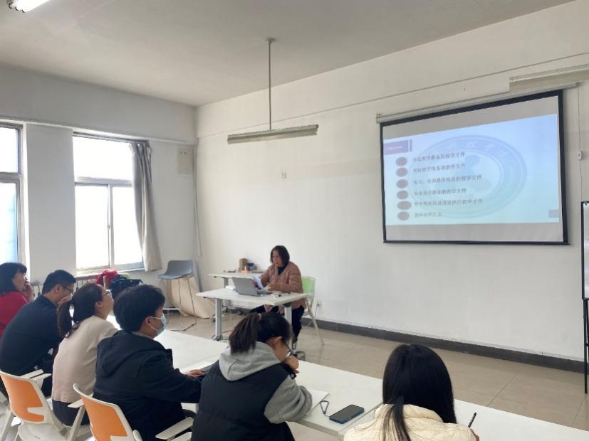 丁英丽老师结合学院实际,主要围绕培养方案、教学大纲、授课计划、教案、讲稿等教学环节角度进行讲解,从理论教学准备的教学文件、实验教学准备的教学文件、实习实训教学准备的教学文件、毕业设计准备的教学文件、青年教师的检查文件及教学材料的汇总等六个方面进行了耐心细致的讲解,分享了宝贵教学经验。