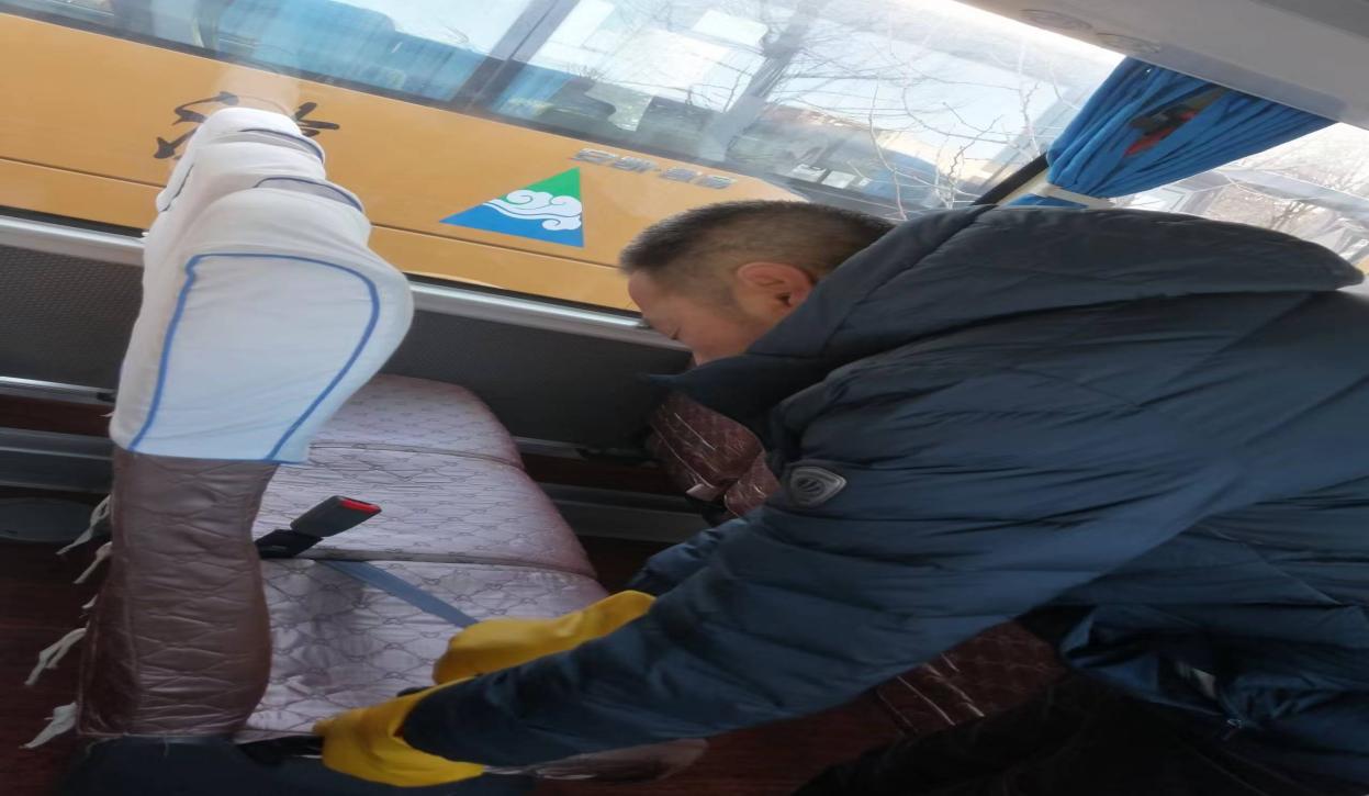 会议结束后,主管车队的副处长李琳霖带领车队队长楚振鑫来到通勤车停车场对所有车辆的安全状况进行现场检查,全面系统检查了发动机保养状况、油路管网的密闭状况、灯光系统、制动装置、轮胎以及消防器材及逃生锤的配备状况、通勤车的安全带提示音、车辆消杀防疫记录、车辆卫生状况、车载监控系统等,对发现的问题提出了整改意见和建议。